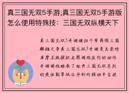 真三国无双5手游;真三国无双5手游版怎么使用特殊技:三国无双纵横天下,群雄逐鹿再现辉煌
